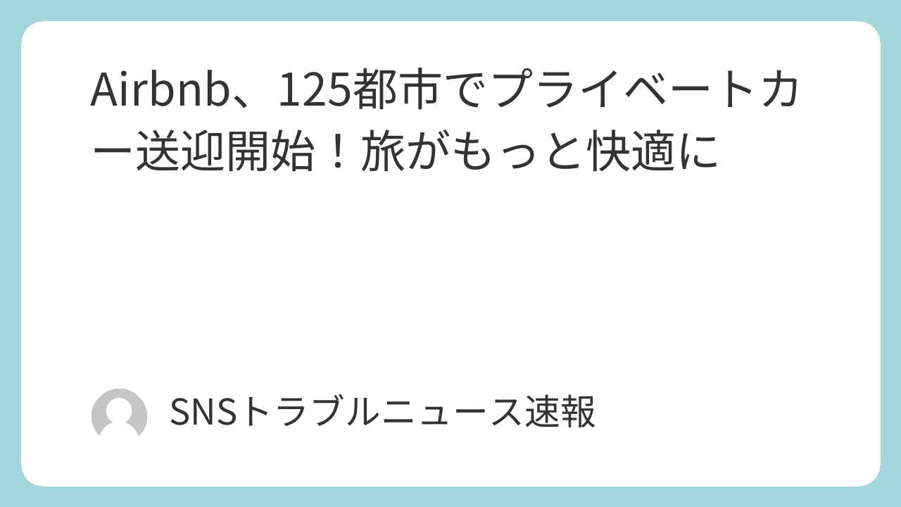 いやぁ、今回のAirbnbの発表、見過ごせませんでしたね! 世界125都市でのプライベートカー送迎サービス開始。これ、単なる移動手段の追加ってだけじゃないんですよ。テクノロジーと人間的な温かさが融合した、まさに「体験」そのものをデザインしようとしているAirbnbの本気度が伝わってくるんです。ITやAI、そしてガジェットといった、僕らが日々追いかけている最先端の技術が、どうやって私たちの「旅」という、もっとも人間的で感情的な体験を豊かにしてくれるのか。その核心に触れる、ワクワクするお話になりそうです。