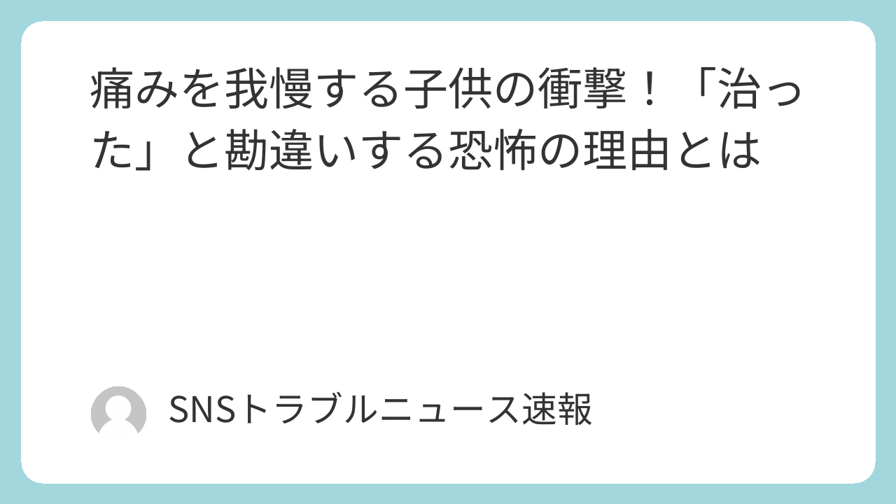 今回の投稿は、私たち一般人が、医療現場における「なぜ?」を理解する上で、非常に示唆に富むものでした。子供に痛み止めを安易に与えないという医師の判断は、単なる経験則ではなく、人間の身体が持つ「痛みのメカニズム」と「治癒プロセス」に関する科学的知見に基づいた、非常に合理的なものであることが分かります。