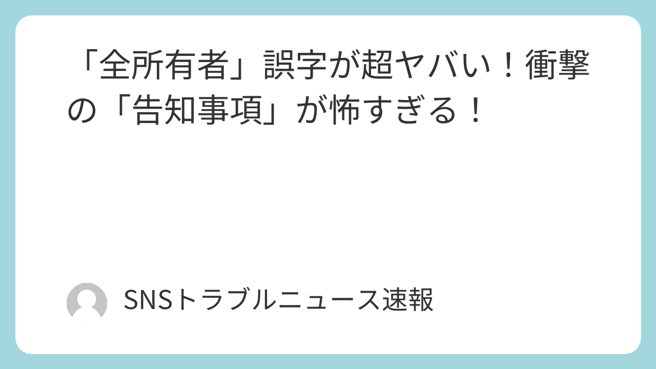 うわー、これ、皆さんもSNSで見たかもしれませんね!不動産情報サイトSUUMOに掲載された中古マンションの告知事項。ただの誤字なのに、多くの人の心をざわつかせ、一瞬にして恐怖の淵に突き落としたあの「全所有者」問題ですよ。