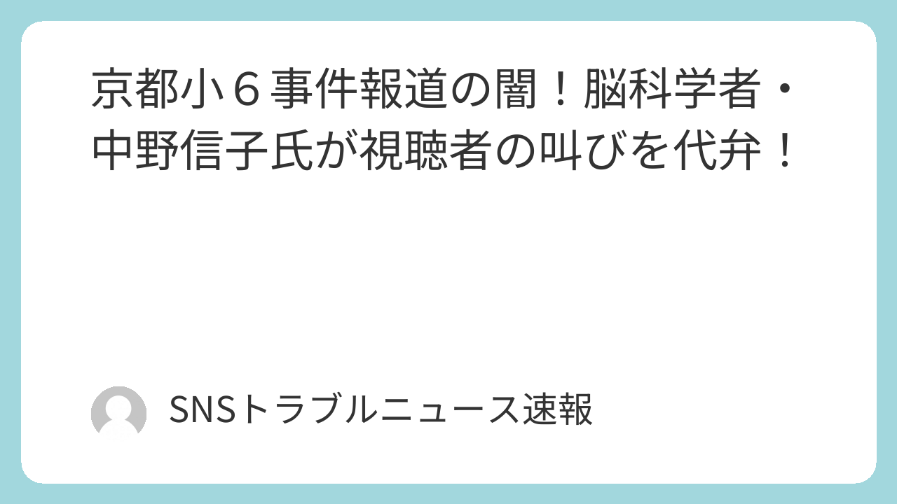 総じて、今回の「京都小6事件」に関するテレビ報道のあり方、特にその過熱ぶりや報道内容の妥当性について、多くの視聴者が疑問を感じており、中野信子氏の発言が、そうした視聴者の本音を代弁する形となったと言えるでしょう。センセーショナリズムに偏らず、冷静で建設的な報道が求められているという意見が、今回の出来事を通して浮き彫りになりました。