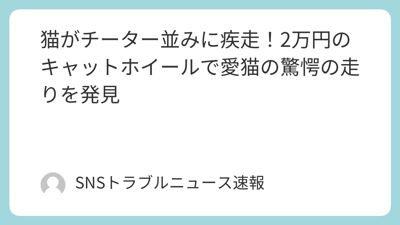 ねぇ、皆さん、あの動画見ました?「そら@ネコ垢」さんが共有してくれた、キャットホイールで爆走する愛猫ちゃんの映像!もう、私も思わず二度見しちゃいましたよ。まるで野生のチーターがサバンナを駆け抜けているかのよう!しなやかで力強いフォーム、そのスピード感には圧倒されるばかりで、コメント欄も「美しいフォーム!」「猫科としての能力の高さに感動!」なんて賞賛の嵐でしたよね。