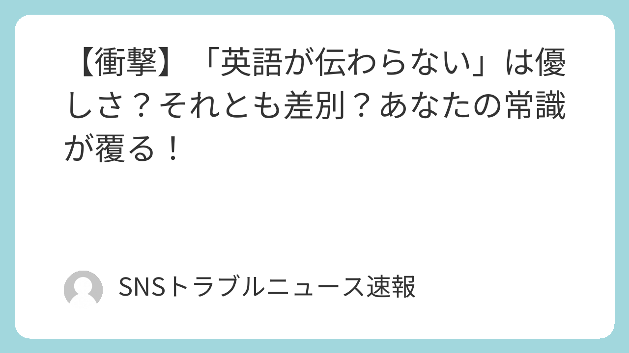 【衝撃】「英語が伝わらない」は優しさ?それとも差別?あなたの常識が覆る!