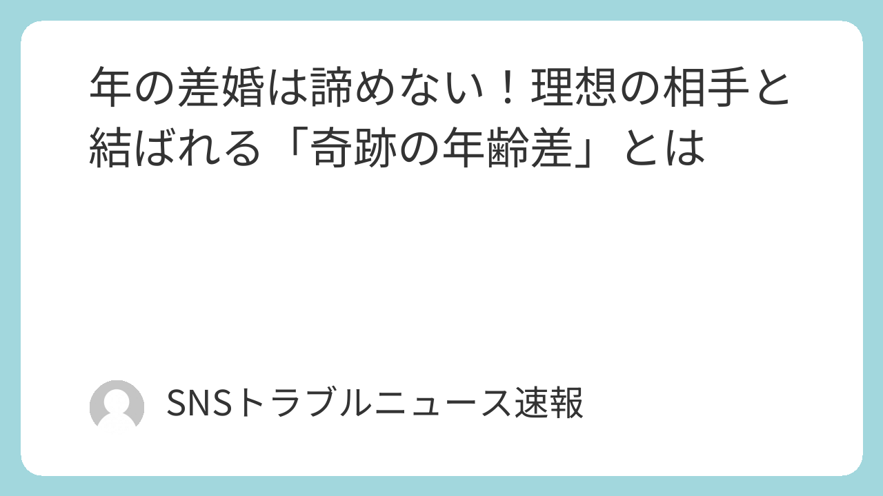 年の差婚は諦めない!理想の相手と結ばれる「奇跡の年齢差」とは
