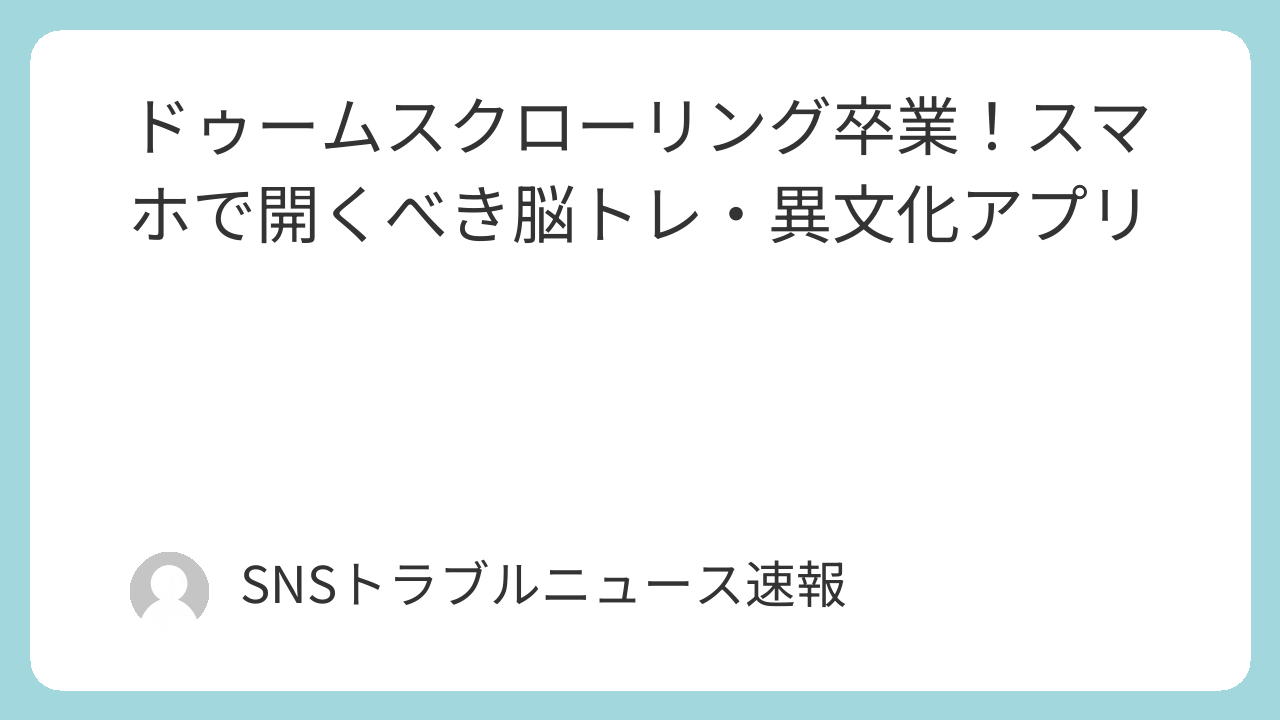 さて、最も多くの人々がドゥームスクローリングに陥る原因の一つは、もしかしたら、日々の生活における「刺激不足」や「目的意識の希薄さ」にあるのかもしれない。そんなあなたにこそ、知的好奇心を刺激し、脳を活性化させてくれるアプリ群は、まさに救世主となり得るだろう。