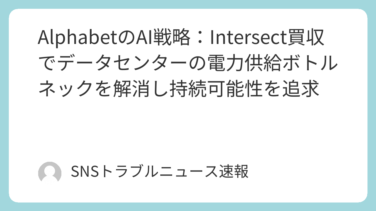 AlphabetによるIntersect Powerの買収は、AI時代の幕開けにおいて、エネルギーインフラがいかに戦略的に重要であるかを明確に示しています。これは、AIの進化が単なる技術的な課題だけでなく、地球規模のエネルギー問題や環境問題と密接に結びついていることを私たちに教えてくれます。