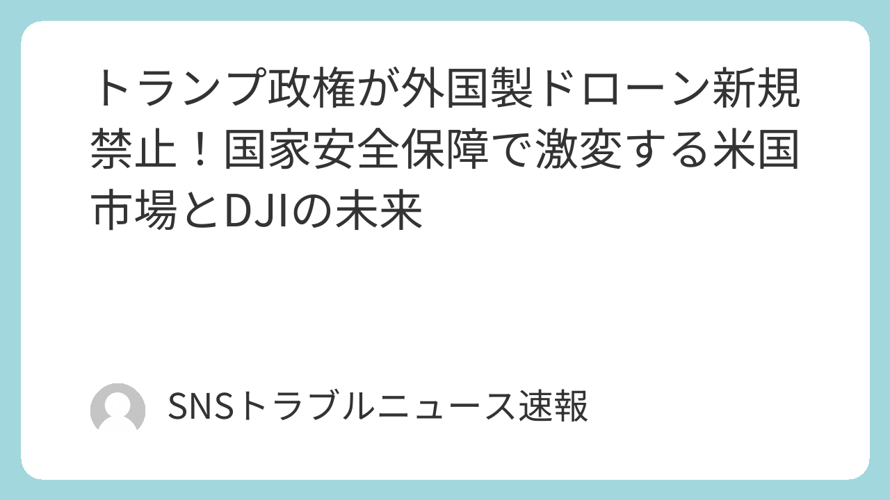 皆さん、今日のニュース、見ましたか? 米国で外国製ドローンの新規流通が禁止されるという、まさに空を揺るがすような決定が下されたんです。いやー、これには本当に驚きと、同時に深く考えさせられるものがありました。私たち技術を愛する者にとって、ドローンという存在はまさに現代の魔法。しかし、その魔法が今、国家安全保障という非常に現実的な壁に直面している。この一件、ただのニュースとして流すにはあまりにも惜しい。その裏側に秘められた技術の真髄と、私たちの未来に与える影響を、じっくりと深掘りしていきましょう。