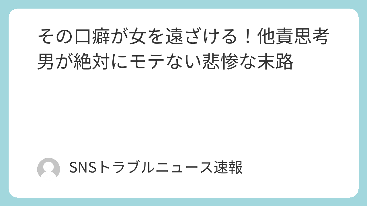 他責思考の人って、実は意外と身近にいるものです。そして、その兆候は日々のささいな言動の中に隠れています。たとえば、こんな口癖に心当たりはありませんか?