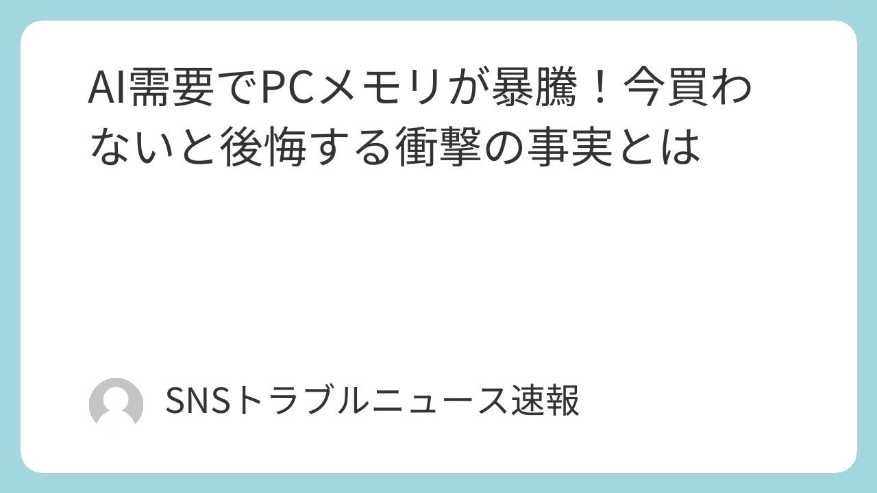 今回のメモリ価格高騰は、AIという新しい技術が、私たちの生活に身近なパソコンの価格にまで影響を与えている、現代社会の複雑さを象徴する出来事だよね。需要と供給の法則、企業の利潤最大化行動、そして私たちの心理が織りなす市場のドラマは、まさに科学の法則によって動いていることがわかる。