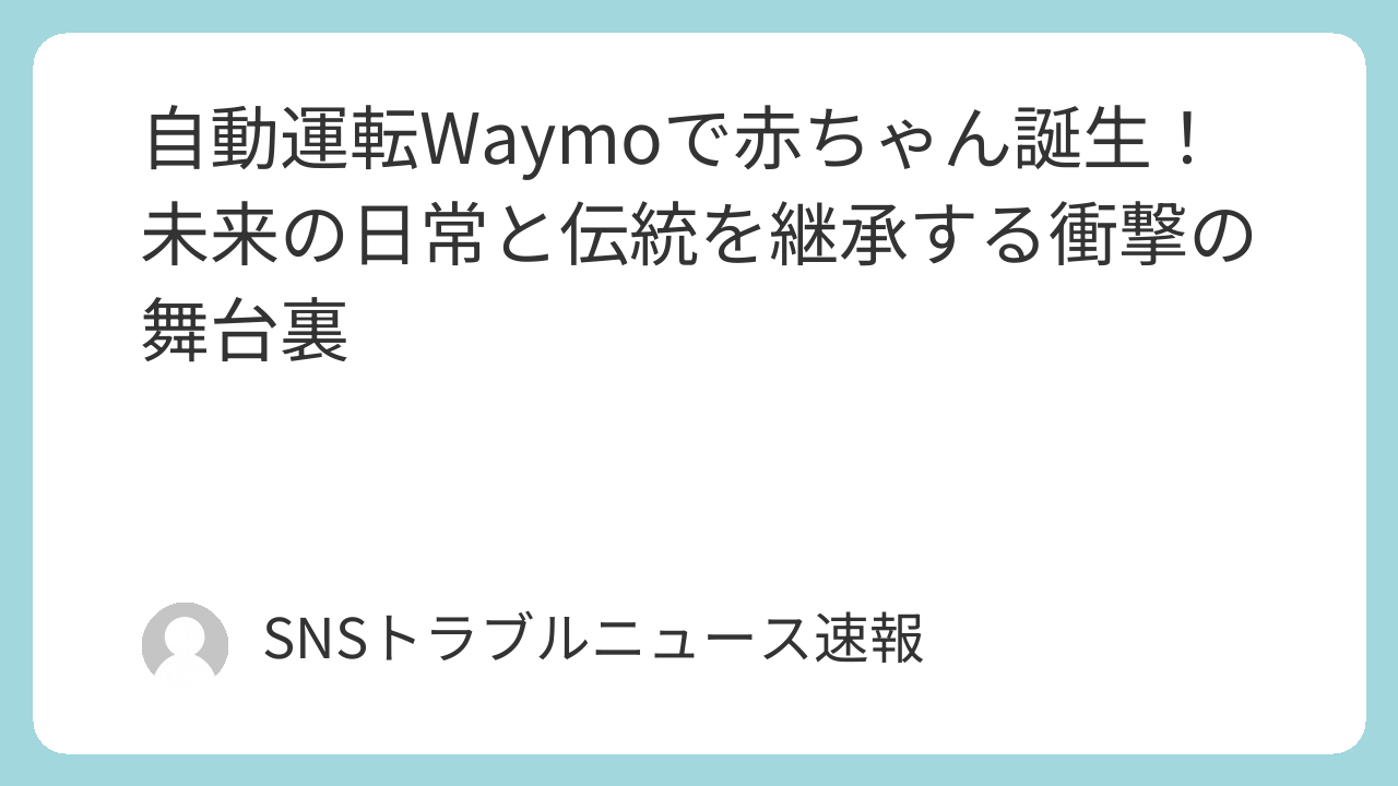 今回のWaymoでの出産は、自動運転技術が単なる移動手段の進化に留まらないことを、鮮やかに示してくれました。これは、AIが人間の生活の深部に、予期せぬ形で、しかし確実に浸透していく未来を予感させる出来事です。