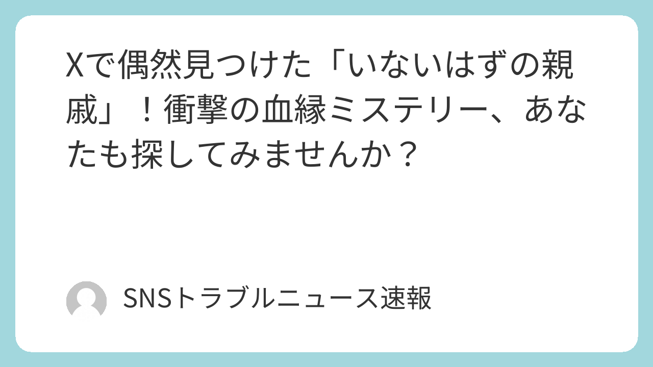 この記事を読んで、もしかしたらあなたのXのタイムラインや、他のSNSにも、まだ見ぬ「いるはずのない親戚」や、思いがけない「発見」が潜んでいるんじゃないか、なんてワクワクしてきませんか?