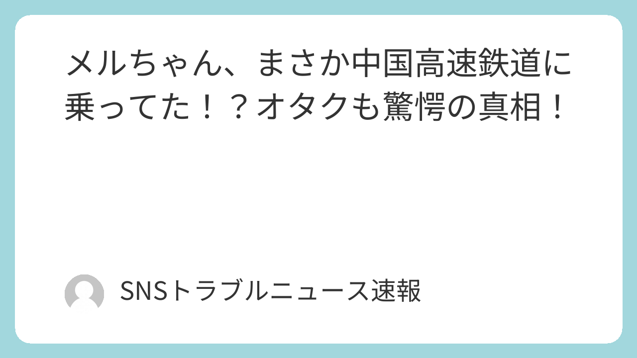 こんにちは、皆さん!突然ですが、「メルちゃんがどこかの電車に乗ってる写真がSNSに投稿されたら、どうなると思いますか?」――え、別に何にもならないって?いえいえ、それがとんでもない大騒ぎになったんですよ!