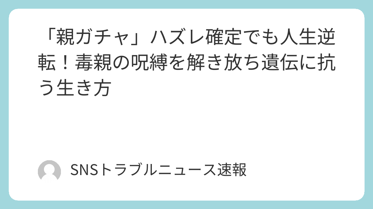 ■「親ガチャ」って言葉、耳にするたびにモヤモヤしませんか?