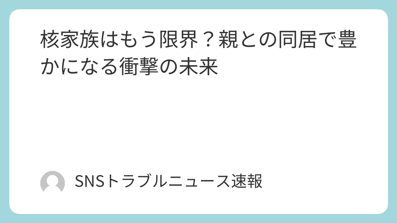 だからこそ、現代社会の経済的重圧の中で、多世代同居、つまり「大家族」が再び経済的な合理性を持つ選択肢として浮上しているんです。これは単なるノスタルジーではありません。