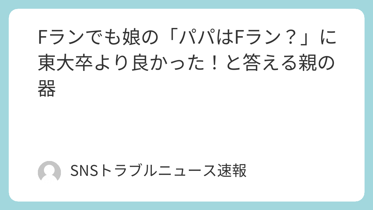 ねえねえ、みんな。突然だけど、もし自分の子どもから「パパはFランでしょ?」なんて言われたら、どう答える?ちょっとカチンとくる人もいるかもしれないし、「どうしてそんなこと言うの!」って怒っちゃう人もいるかもしれないよね。でも、先日SNSで話題になった(株)おくりバント会長の高山洋平さんの切り返しが、まさに「神対応」と称賛され、多くの人の心に刺さったんだ。
