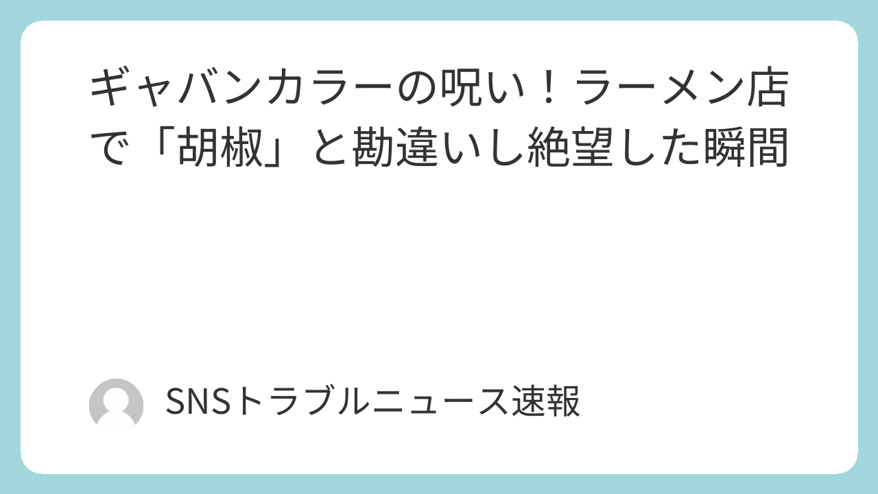 いやー、最近SNSでとあるラーメン屋さんの調味料をめぐる話がめちゃくちゃバズってたの、みんな知ってる? なんでも、ラーメンのテーブルに置いてあった胡椒そっくりの容器が、実は全然違う調味料だった!って話でね。投稿者さんは「文字読まなかった自分が100パー悪い」って反省してるんだけど、これに「わかるー!」「ギャバンカラーの呪い!」って共感の声が殺到したんだよね。