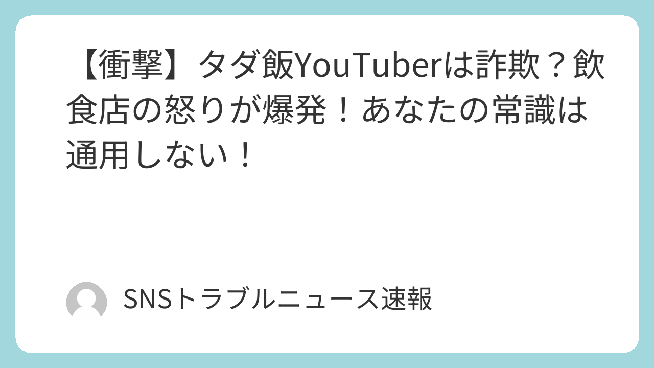一方で、SNSではこのYouTuberさんの行動に対して、ものすごい勢いで批判の声が上がったよね。「ただの食い逃げだ!」「詐欺だ!」「信じられない!」といった厳しい意見が飛び交ったのは、なぜなんだろう?
