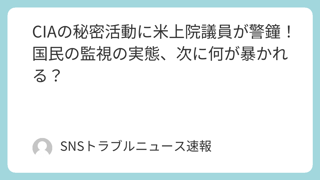 いやー、皆さん!技術って本当に面白いですよね!日進月歩どころか秒進分歩で進化するIT、AI、ガジェットの世界に、僕ら専門家はもう目が離せません。新しいプロセッサが発表されるたびに心が躍り、革新的なAIモデルが登場するたびに未来の可能性にワクワクします。でもね、その輝かしい技術の裏側には、時にゾッとするような影が潜んでいることもあるんです。今回、ロン・ワイデン上院議員がCIAの「ある活動」に対して「深い懸念」を表明したというニュース。これ、僕ら技術好きにとっては他人事じゃないんですよ。むしろ、僕らが愛する技術がどう使われ、どう管理されるべきかを深く考える、絶好の機会だと思っています。