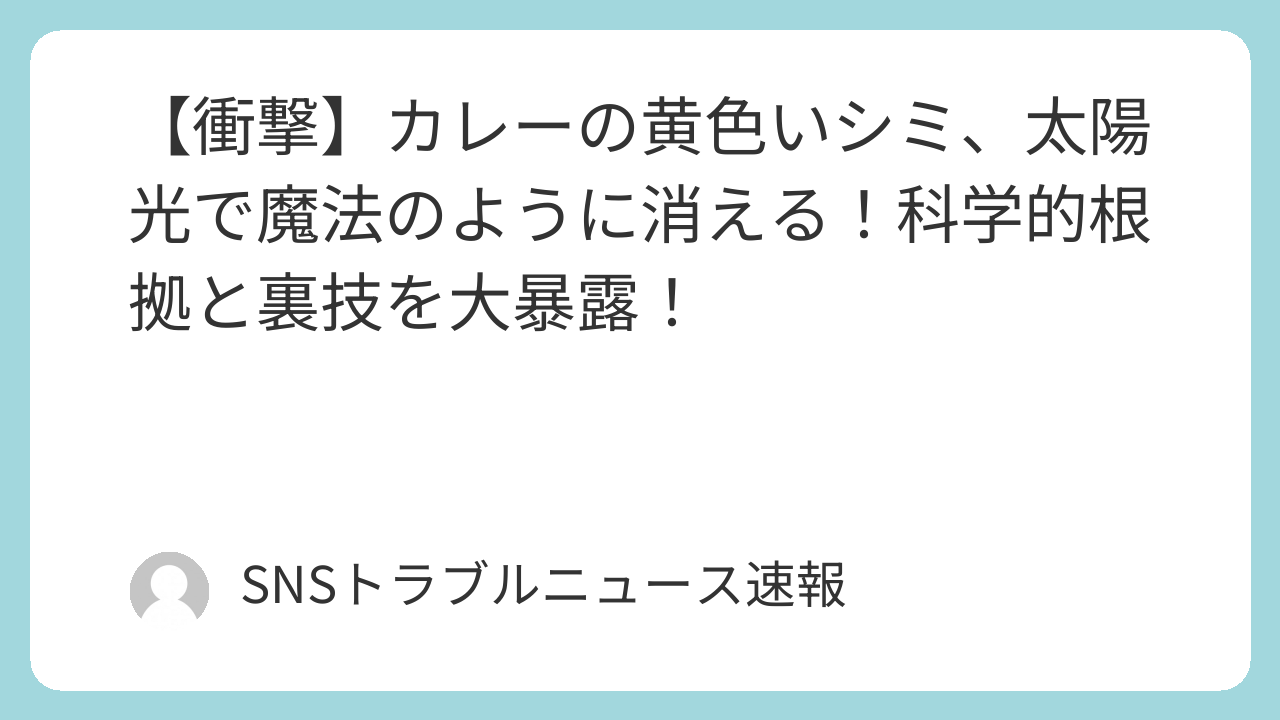 「カレーのシミが太陽で消える」という現象は、多くの人にとって「常識外れ」で「意外」な情報です。私たちが普段、シミ抜きには洗剤や漂白剤を使うものだ、という「スキーマ」( 心理学でいうところの、物事を理解するための枠組みや知識の体系)を持っているからです。そこに、全く新しい、しかも「手軽」で「無料」な解決策が提示されたことで、多くの人が「試してみよう」という行動につながったと考えられます。