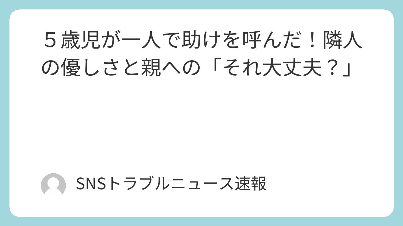 5歳児が「助けを求める」ことができたのは、その子の賢さと、投稿者さんの温かい人柄、そして良好なご近所関係という、複数のポジティブな要因が重なった結果です。これは、社会全体で子供を育むことの重要性を示唆しています。