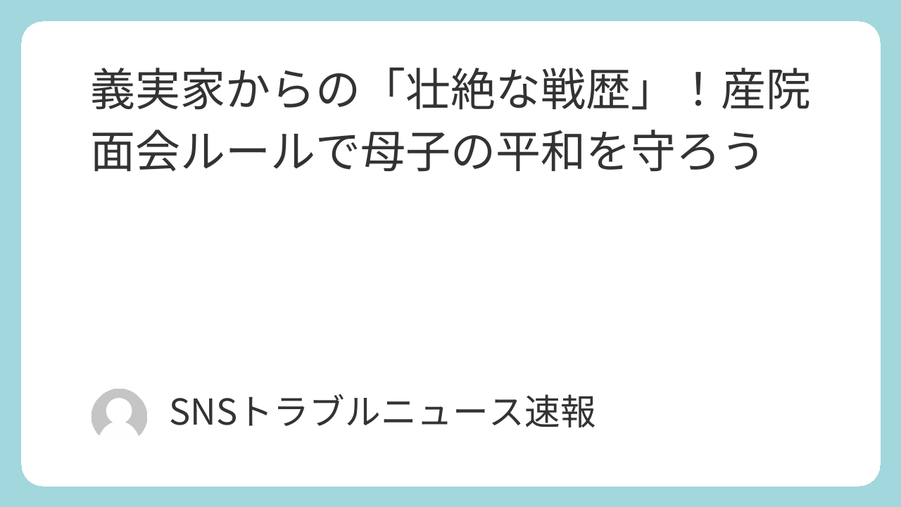 最近、産院の面会ルールに関する投稿がSNSで大きな話題を呼んでいます。「産院の面会は夫か実両親のみ」という、一見シンプルなお触れが、多くの妊婦さんたちの「壮絶な戦歴」を呼び覚ますきっかけとなったようです。この投稿をきっかけに、義実家からの過度な干渉や迷惑行為に悩まされた経験談が数多く寄せられ、共感の波が広がっています。