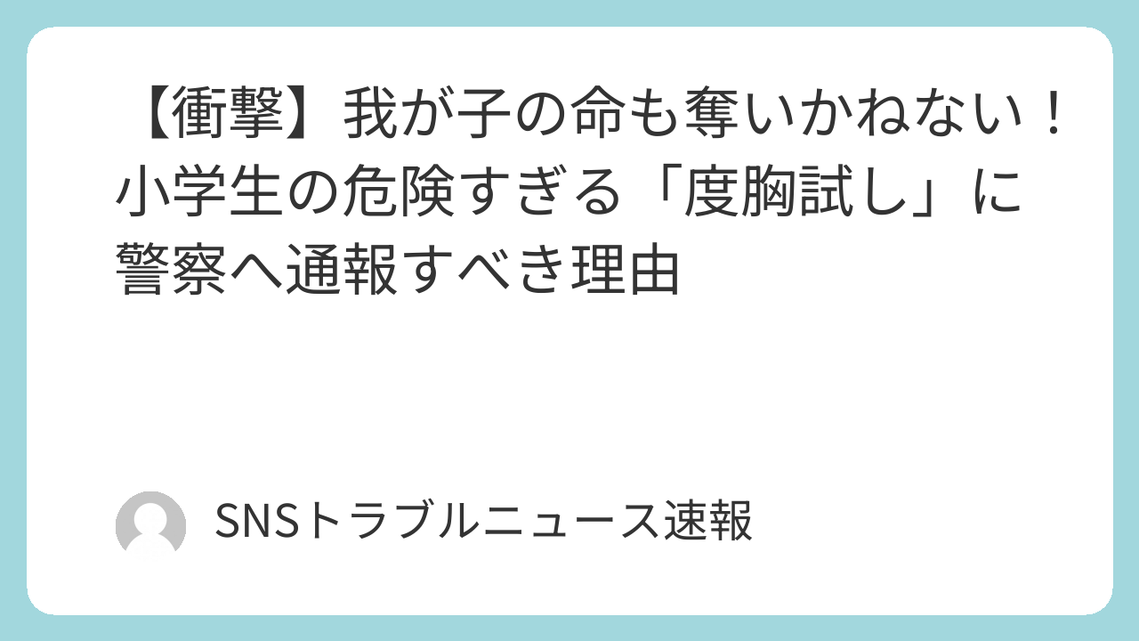 子供たちの「度胸試し」は、自らの命を危険に晒すだけでなく、周囲の人々の安全や精神を脅かす「悪質性」を孕んでいます。この「悪質性」を、単なる子供のいたずらとして見過ごすのではなく、社会全体で「これは許される行為ではない」という強いメッセージを伝えることが重要です。