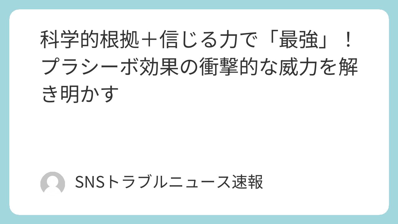 「科学的根拠のあるものを強く信じて使うのが最強」という医師の言葉は、まさに的を射ている。しかし、それ以上に重要なのは、その「信じる力」を、私たち自身が能動的に、そしてポジティブに活用していくことだ。
