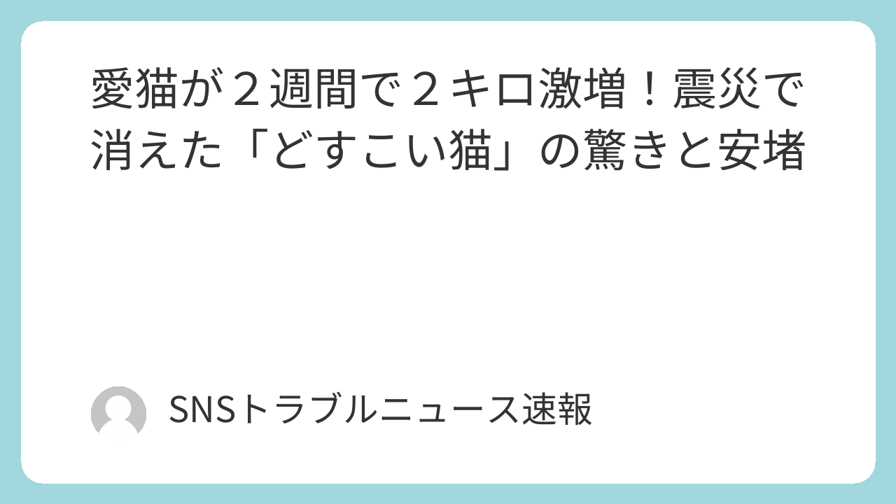 震災という、多くの悲しみや苦しみに満ちた出来事の中で、この猫ちゃんのエピソードが「初めてちょっと笑える話」「ほっこり系」「一番可愛い面白い」「一番ホッとしたエピソード」として受け止められたことは、非常に示唆に富んでいます。