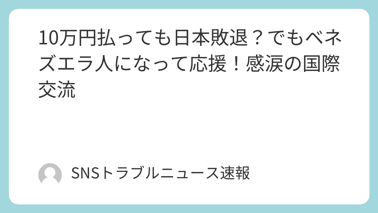 Sumideさんの行動が、ベネズエラと日本という「兄弟国」としての絆を称賛され、「君はもうベネズエラ人だ」という温かいメッセージまで寄せられたのは、非常に感動的なエピソードです。ここには、国際交流における心理学的な側面と、ゲーム理論的な視点を見出すことができます。