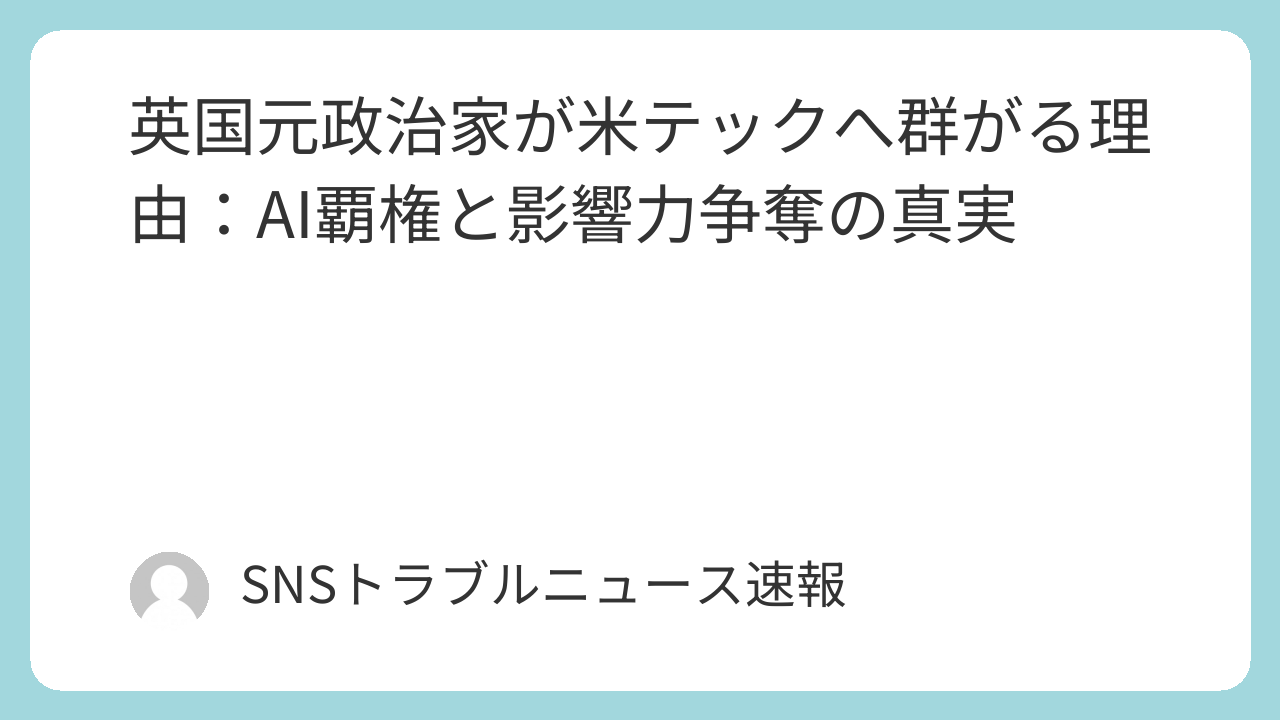 皆さん、こんにちは!テクノロジーの世界の最前線から、今日もとっておきの話題をお届けします。最近、私たちが目にするニュースの中で、ちょっと異様な、いや、とんでもなくエキサイティングな潮流があるのにお気づきでしょうか?それは、国家の舵取りをしてきた元政治家たちが、まるで吸い寄せられるかのように、米国の巨大テック企業へと次々と転身しているという現象です。これって、ただのヘッドハンティングじゃない。まるで、世界のパワーバランスが、いや、人類の未来の設計図が、大きく書き換えられようとしている予兆なんです。