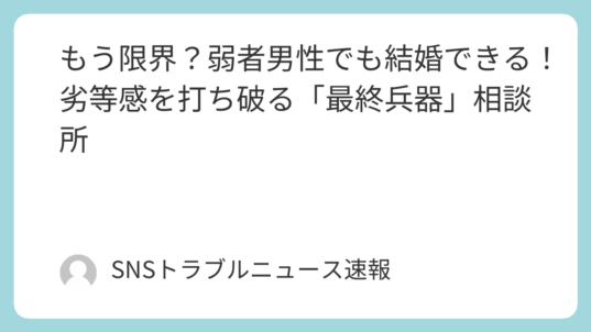 社会 もう限界?弱者男性でも結婚できる!劣等感を打ち破る「最終兵器」相談所