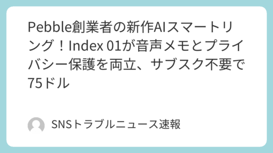 テクノロジー Pebble創業者の新作AIスマートリング!Index 01が音声メモとプライバシー保護を両立、サブスク不要で75ドル