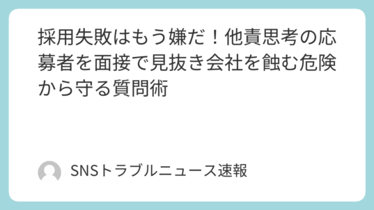 社会 採用失敗はもう嫌だ!他責思考の応募者を面接で見抜き会社を蝕む危険から守る質問術