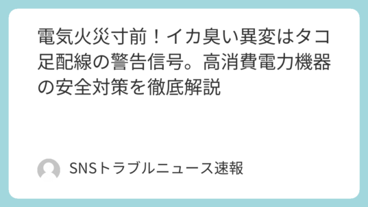 SNS 電気火災寸前!イカ臭い異変はタコ足配線の警告信号。高消費電力機器の安全対策を徹底解説